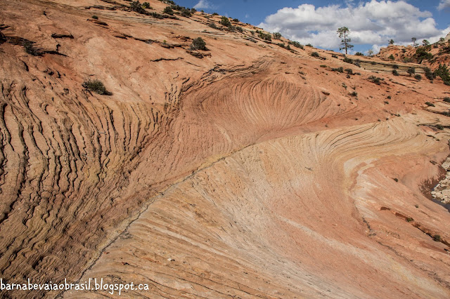 | Zion National Park, Narrows: no caminho de volta já não nos importávamos em nos molhar, ou em nos sujar, e as pedras do fundo já não nos desequilibrava. Voltamos em 1/3 do tempo que demoramos para ir, passávamos pelas pessoas no início do canyon caminhando vagarosa e cuidadosamente, como nós no início do dia, e agora já parecíamos um tsunami chegando de forma rápida, barulhenta e sem nenhum cuidado... |